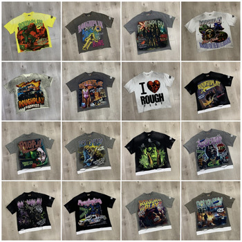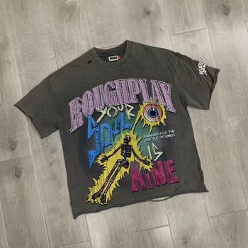 शीर्ष गुणवत्ता वाले रफप्ले टी-शर्ट डिजाइनर व्यक्तित्व स्ट्रीटवियर विंटेज धोया गया डिजिटल मुद्रित ग्राफिक टी-शर्ट पुरुषों के लिए